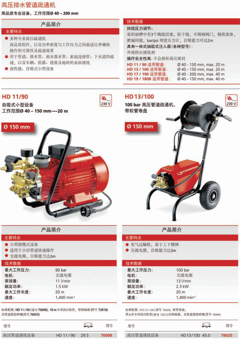 HD 13/100 高壓排水管道疏通機